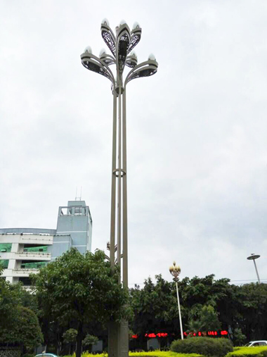 八叉九火玉兰灯,即“花灯”,指的是多头,植物造型的灯杆。该灯选取玉兰花瓣的设计元素,实现了灯杆与灯头的实体链接,整灯呈现通透灵秀之感。灯头有9个装饰光源3层分布,似是9朵玉兰花环绕形成一朵大玉兰。