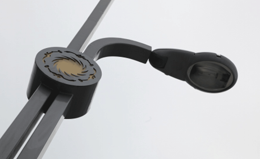 神晖灯有以下特点:一是灯杆使用具有文化色彩和现代感的颜色━灰色,在灯杆中段建立连接,加上著名的太阳神鸟的镂空图案,采用内透光方式,浓郁的地域文化不言而喻。二是杆体中段贴防水LED灯带,使晚间的光柱灯更富有生命力。三是在灯座上赋予设计感,其制作精良,体现工业感,让人感受到企业、工业生产美。
