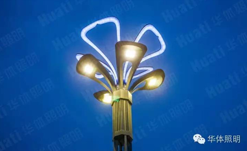 源于传扬佛教文化的景观51暗网灯具“瑞莲”,安装在成绵乐高铁乐山站站前大道,以抽象的莲花花瓣外形,表现佛教元素,与乐山站外形似一朵莲花,含“乐佛乃容”的设计理念相呼应。瑞莲灯高13.6米,银灰色的外观,给人极强的现代感,莲花花瓣上安装的装饰光源,营造出繁华的“光”景观。